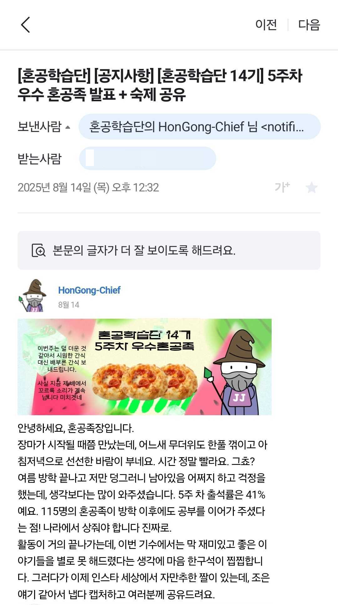 혼공학습단의 또 다른 장점은 매주 진행한 숙제를 바탕으로 혼공족장님께서 우수 혼공족에게 포상을 준다는 것이다.