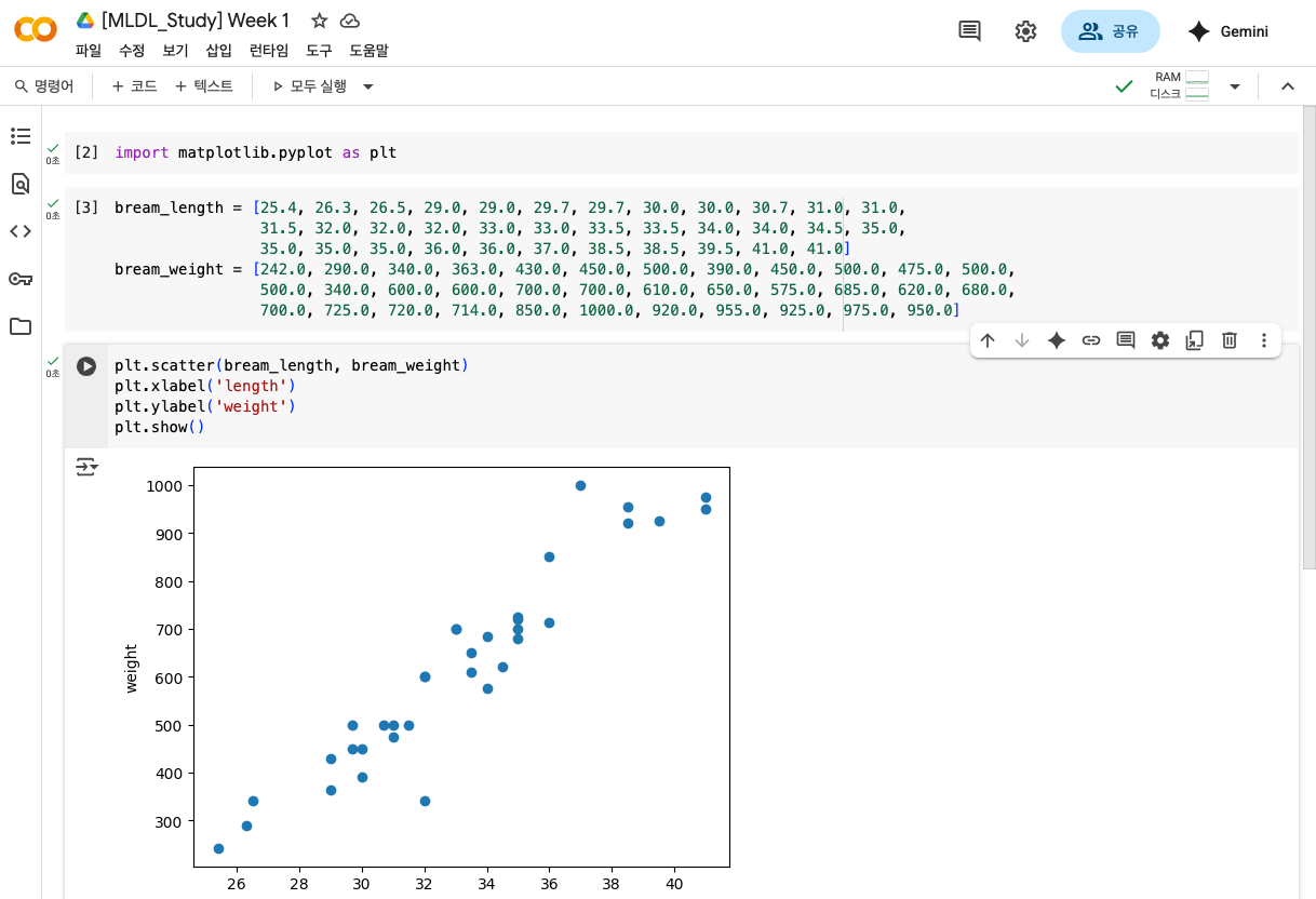 [혼공학습단 14기_혼공머신 1주차] 코랩 (Colab) 시작하기